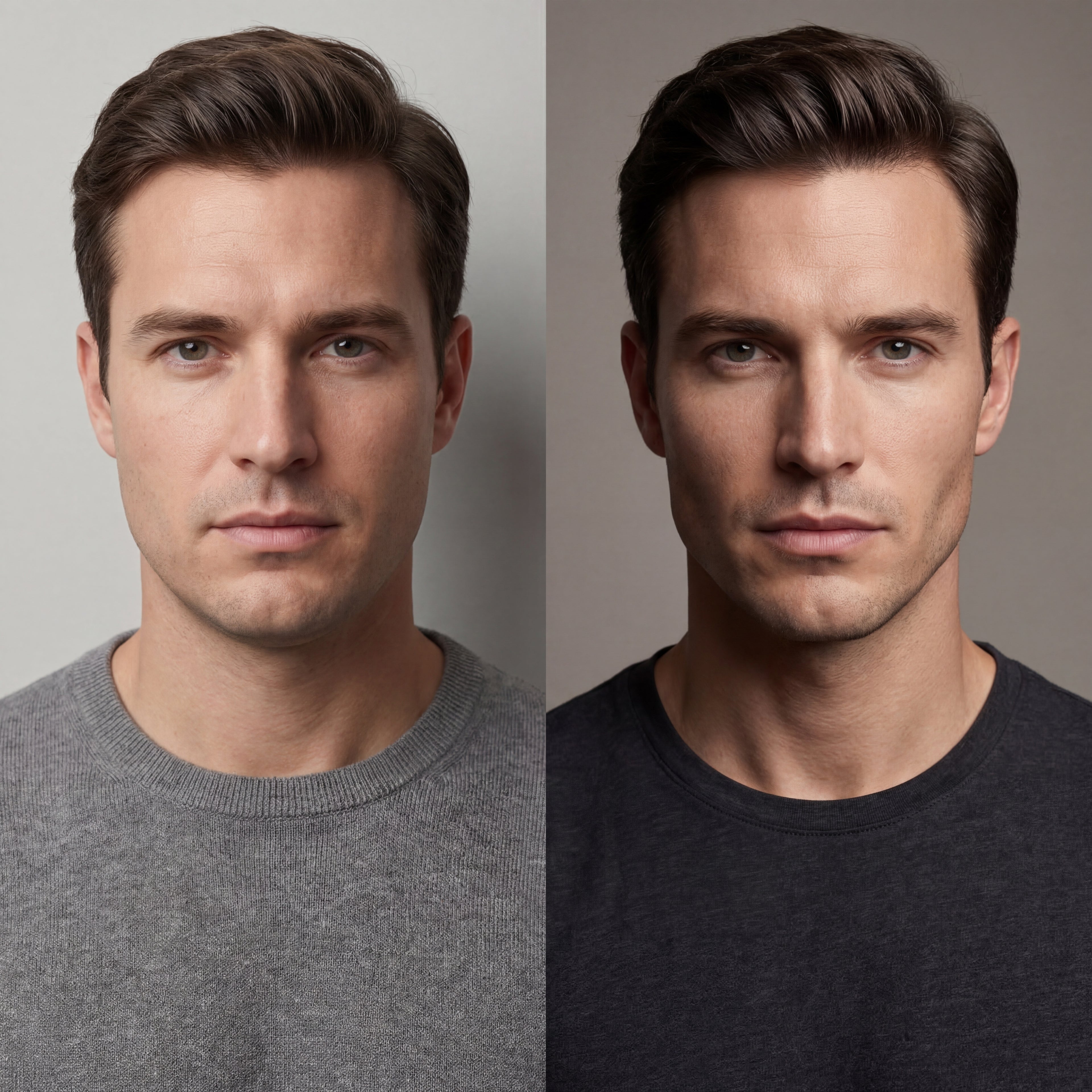 The left side is what most men live with — fluid sitting under the jawline, softening the edge, blurring the definition.